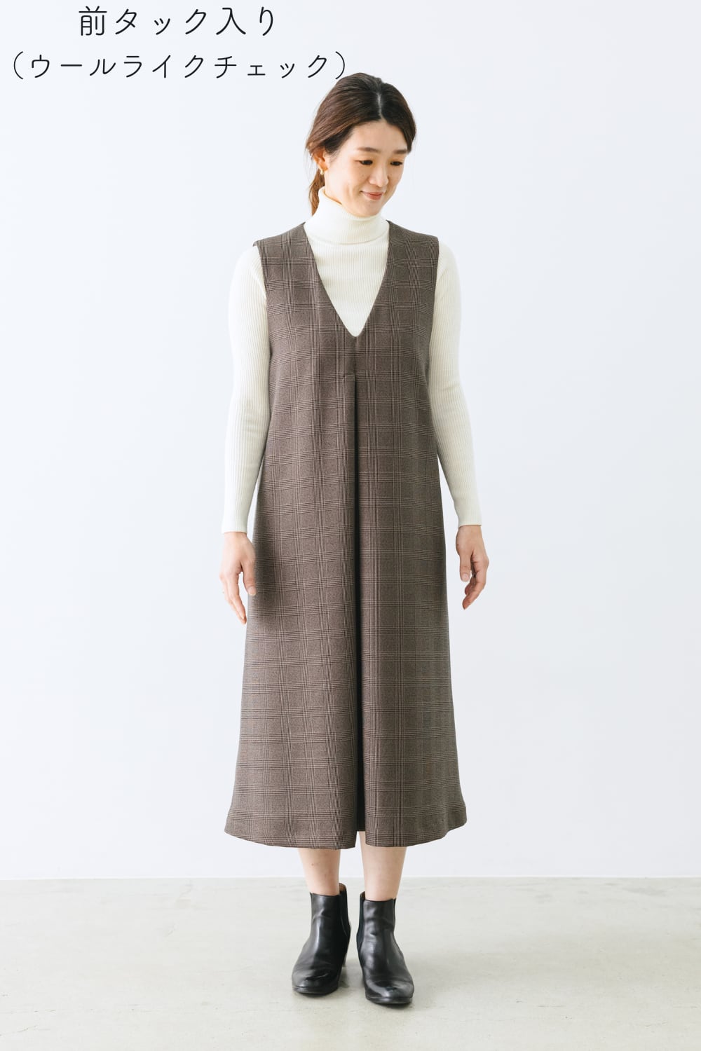 【型紙付きキット】通年使える!イージーケア ・Vネックワンピース(型紙・布キット)